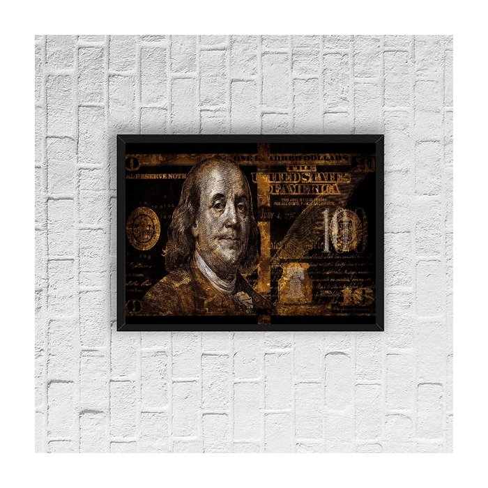Quadro Decorativo Nota De Dólar Dourada 45x34cm:Madeira preta