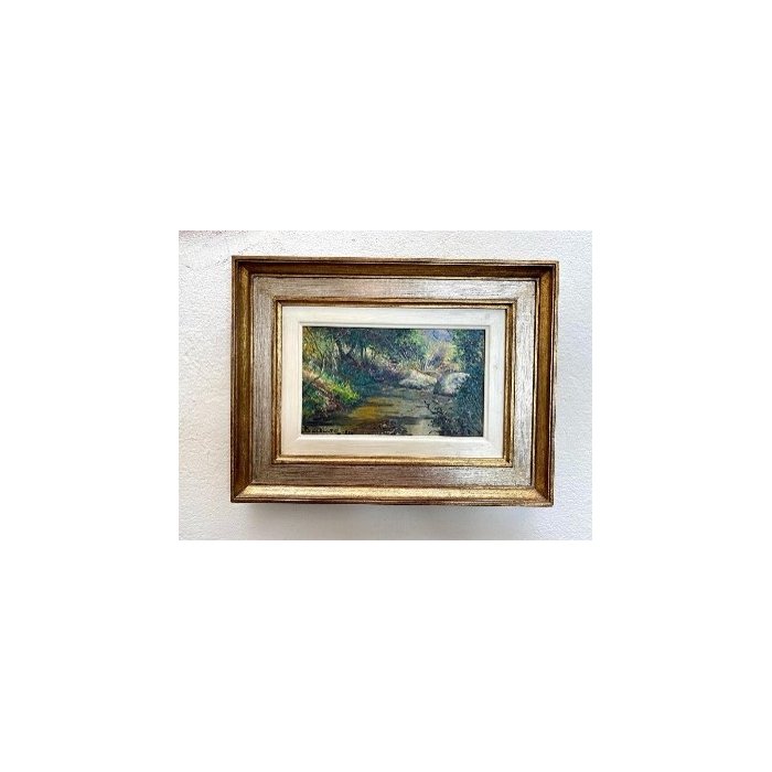 O quadro decorativo "O Ribeirão" pelo pintor Aldo Cardarelli é uma peça que transporta os espectadores para um cenário sereno e encantador da natureza pintado em 1981. Com uma paleta de cores vibrantes e uma abordagem realista, Cardarelli retrata um cenário de um ribeirão, capturando a beleza natural e a tranquilidade do ambiente. A atenção meticulosa aos detalhes é evidente nas características naturais, como as texturas das rochas nas margens do ribeirão, as folhas das árvores e a vegetação que emoldura a cena. Cada elemento é retratado com cuidado, resultando em uma imagem que convida os espectadores a explorar a riqueza da paisagem. Além disso, o quadro "O Ribeirão" pode evocar uma sensação de calma e conexão com a natureza. A cena parece intocada e intemporal, permitindo aos observadores uma pausa do ritmo agitado da vida cotidiana. A composição também pode inspirar uma apreciação renovada pela beleza simples da paisagem ao nosso redor.