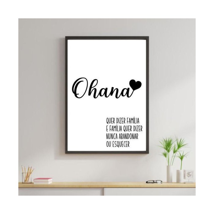 Quadro decorativo ohana - quer dizer família 34x23cm - moldura branca