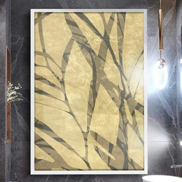 Quadro Decorativo Para Banheiro Abstrato Galhos Dourados-34x49Cm