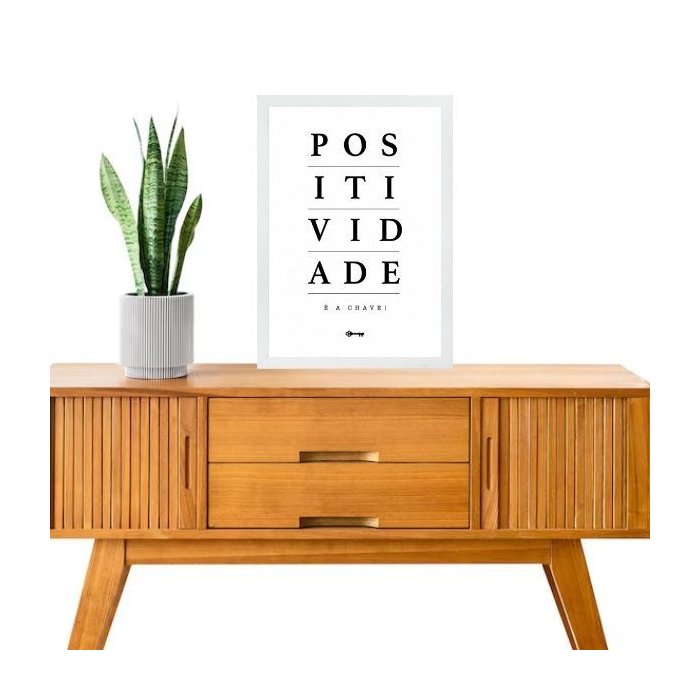 Quadro Decorativo Positividade É a Chave 45x34cm - com Vidro:moldura Branca