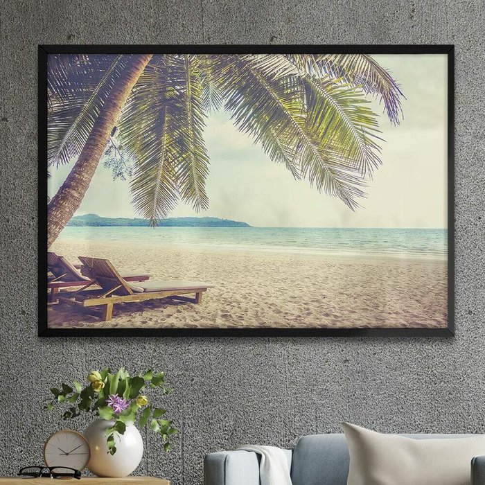 Quadro Decorativo Praia Palmeiras Efeito Retro 02-34x49Cm