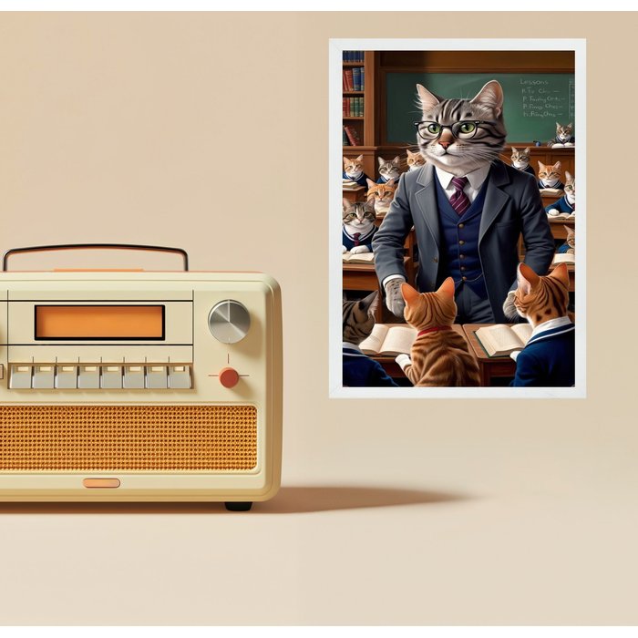 Quadro Decorativo Professor Gato 33x24cm - com Vidro:moldura Preta