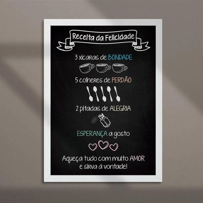 Quadro Decorativo Receita da Felicidade 20x30 cm - Moldura Branca