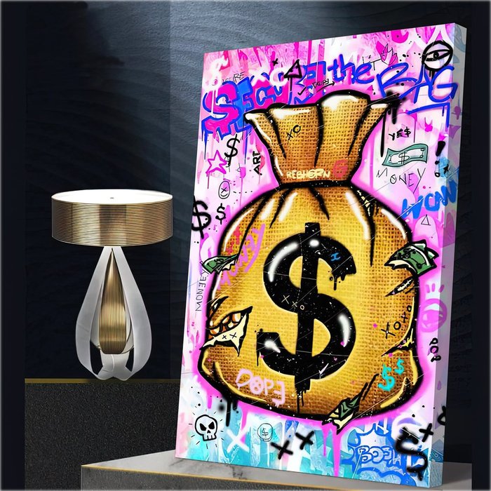 Quadro Decorativo Saco De Dinheiro:120x80 cm/BRANCA