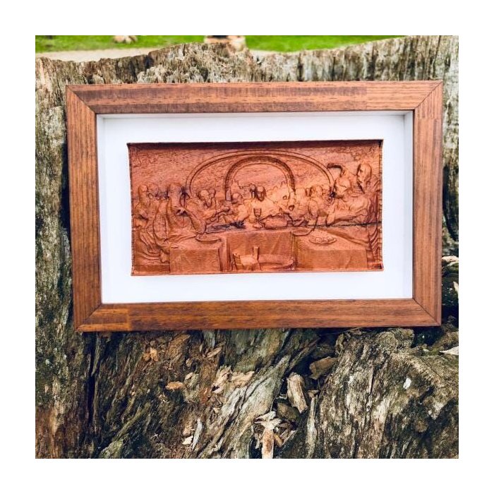 Quadro decorativo com relevo 3D da Santa Ceia em madeira de lei. Feito com moldura e acabamento de alta qualidade.