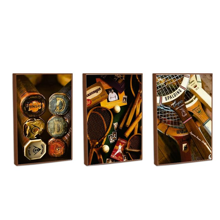 Conjunto de Quadros Decorativos com 3 telas com Moldura Filete - Sport Tênis Vintage