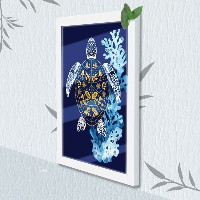 Quadro Decorativo Tartaruga Abstrata +vidro 33x25 Escritório:branco