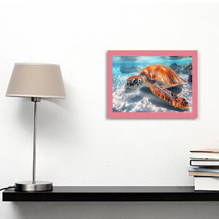 Quadro Decorativo Tartaruga Marinha + Vidro 33x25 Escritório:rosa