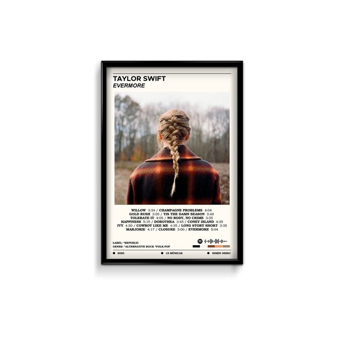 Quadro Decorativo Taylor Swift Álbuns Spotify:evermore Evermore