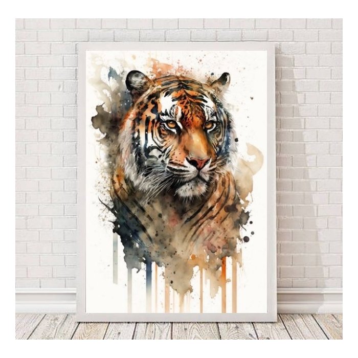Quadro Decorativo Tigre Aquarela 33x24cm:Madeira preta