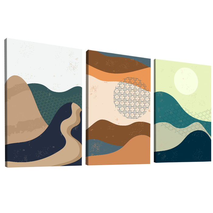 Quadro Decorativo Trio Abstrato Formatos de Montanha Borda Infinita - 60x40cm -