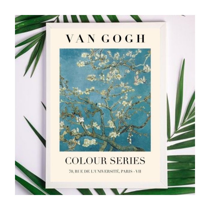 Quadro Decorativo Van Gogh Cerejeiras 24x18cm:madeira Branca