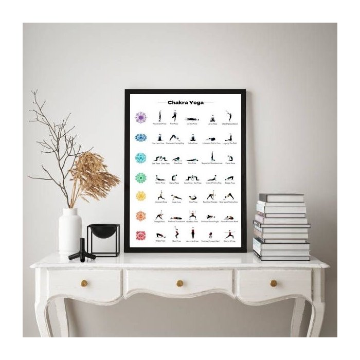 Quadro Decorativo Yoga Chakras Posições 33x24cm:madeira Preta