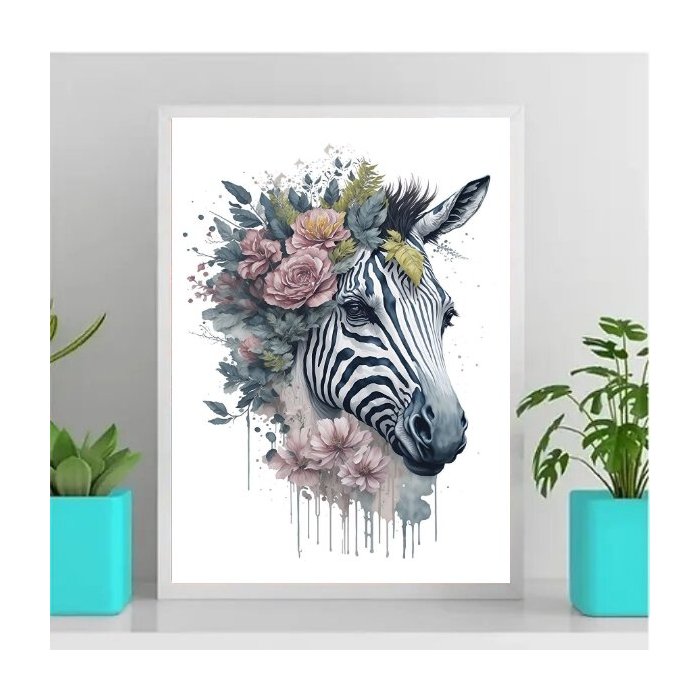 Quadro Decorativo Zebra Aquarela 33x24cm:Madeira branca