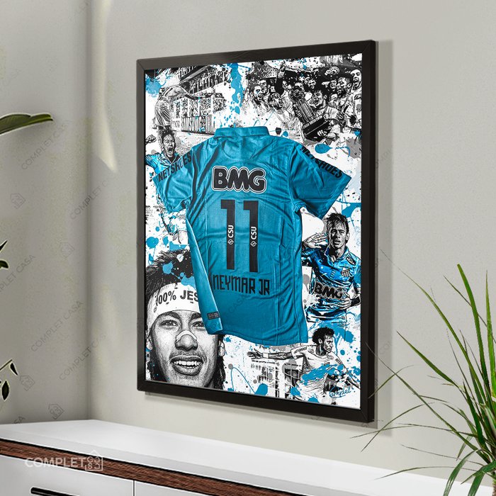 Quadro Desenho Camisa 11 Azul Arte Neymar Moldura e Vidro
