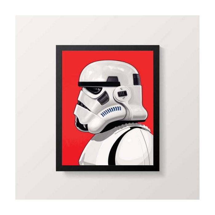 Quadro Desenho Stormtrooper Perfil 24x18cm - com vidro:Madeira branca