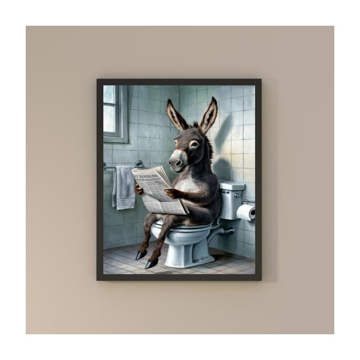 Quadro Divertido Banheiro Burro Lendo Jornal 33x24cm:moldura Preta