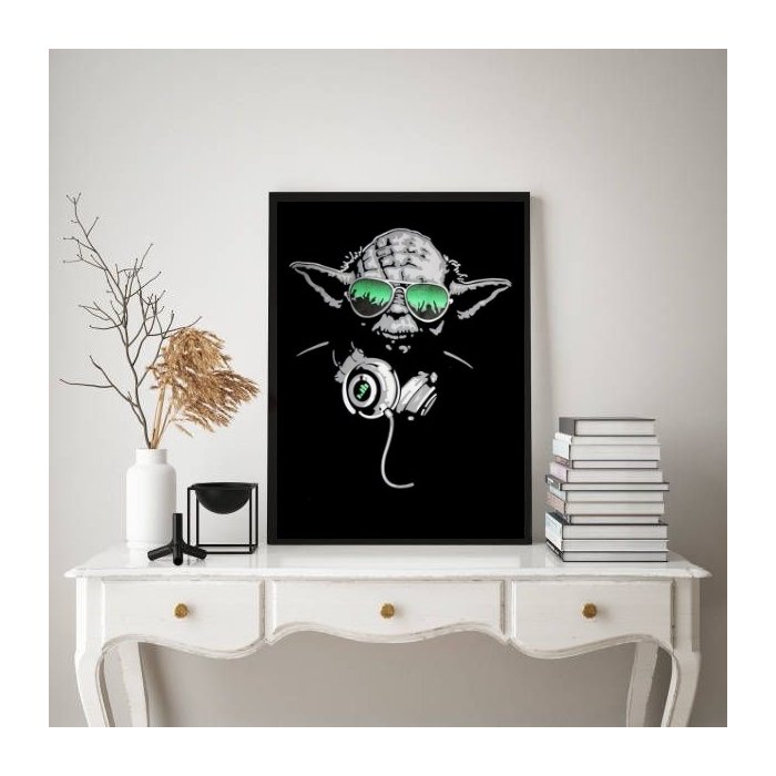 Quadro Dj Yoda - Óculos Verde 33x24cm - com Vidro:moldura Preta