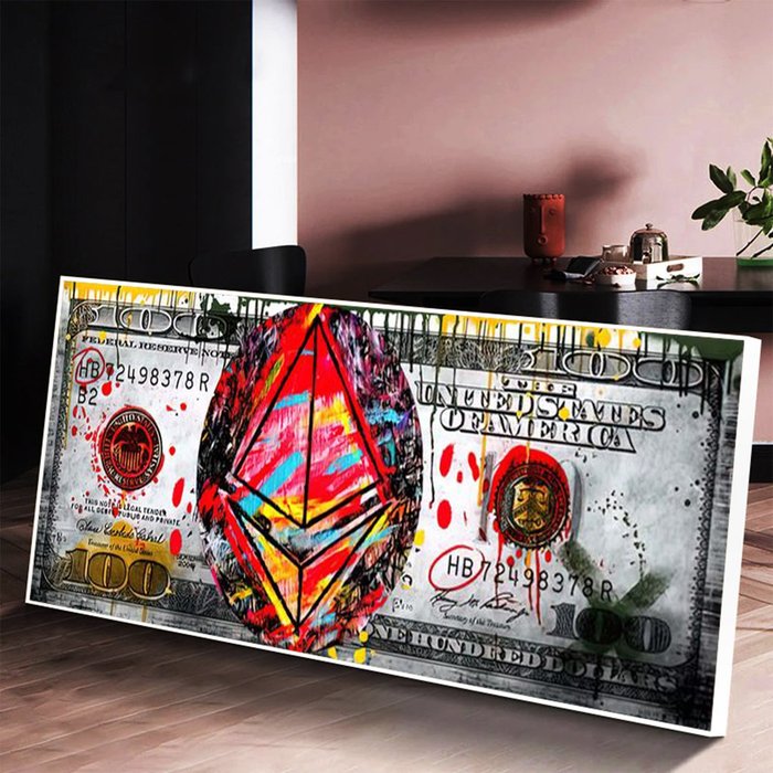 Quadro Dolar Bitcoin Art de Rua Moderno:140x70 cm/BORDA INFINITA