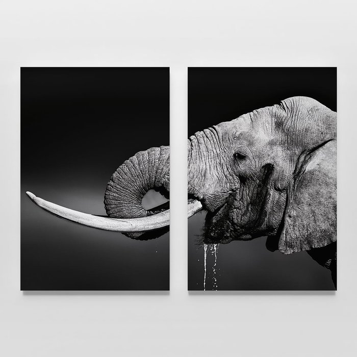 Quadro Elefante Bebendo Água - Kit 2 telas