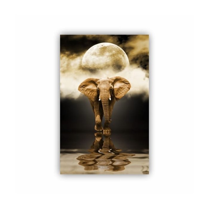 Quadro Elefante Vertical Noite Luar - Tela Única - 60 x 40 cm - Preta