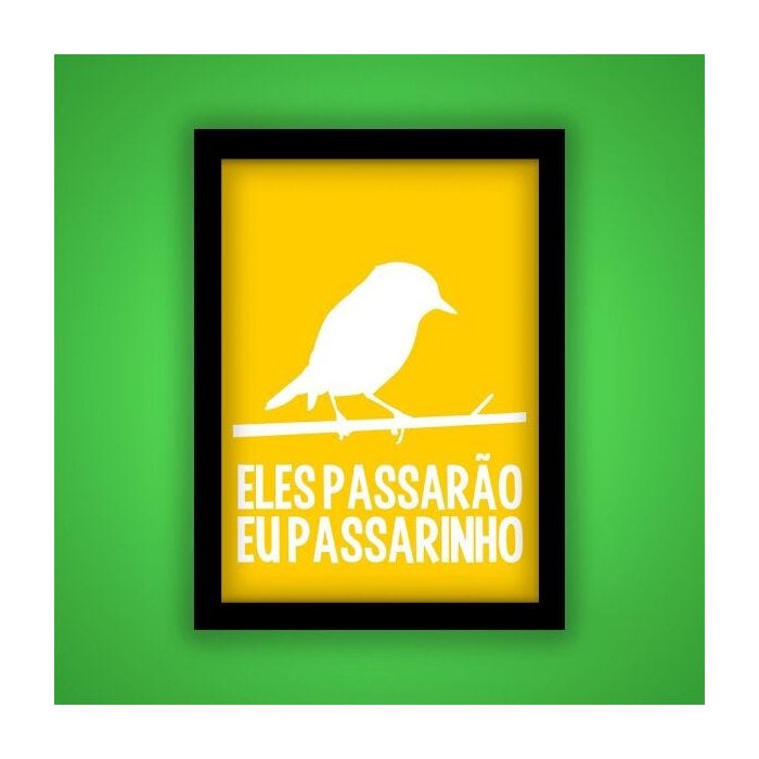O quadro “Eles Passarão, Eu Passarinho” em branco e amarelo é uma decoração delicada e inteligente para a sua sala, quarto, corredor ou escritório! Depois de ser recusado por motivos políticos, por 3 vezes, à imortalidade da Academia Brasileira de Letras, Mário Quintana criou o Poeminho do Contra, que imortalizou a frase deste quadro. Com certeza uma forma leve de enxergar as adversidades da vida!