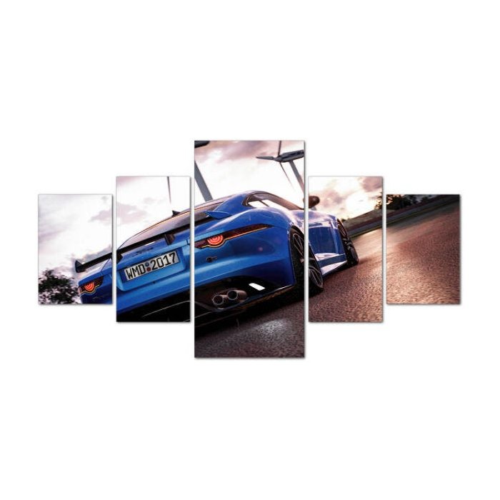 Quadro em Mosaico Jaguar Azul CrossArt Carros 5pçs 120x60cm