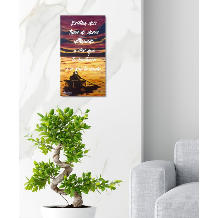 Quadro em Óleo Original Pintado a Mão com Frase Motivacional Medindo 61 X 34 Cm