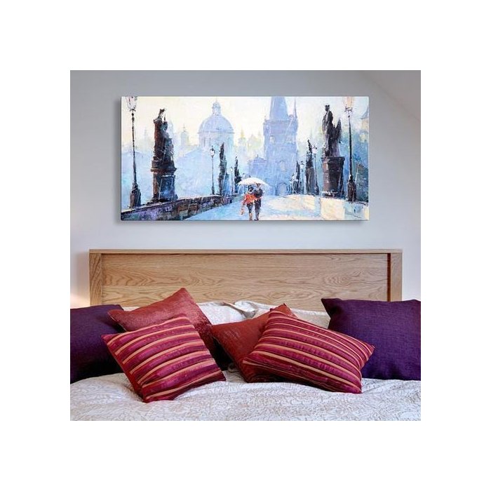 Quadro em Tela Canvas Fino Casal na Chuva,Praga 0,60 x 0,30m