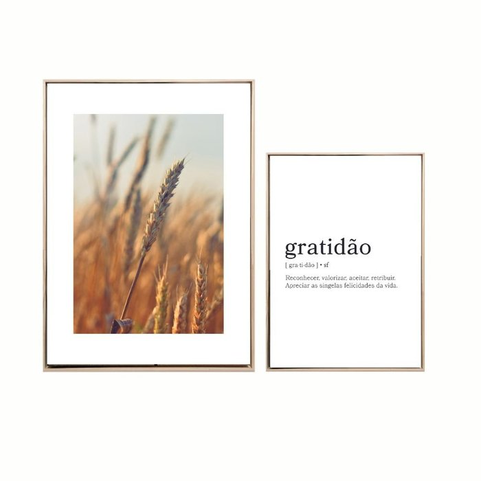 Quadro em Tela Canvas Minimalista Trigo Frase Gratidão