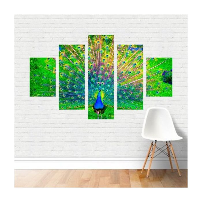 Quadro em tela Canvas Pavão Indiano Colorido Ave 110x65 Colorido