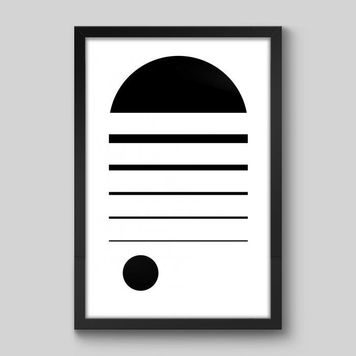 Quadro Escandiavo Meia Lua Sobre Linhas - 30x20cm - Moldura Padrão Preto