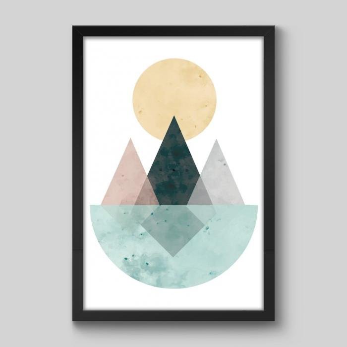 Quadro Escandinavo Montanhas e Sol - 45x30cm - Moldura Padrão Preto