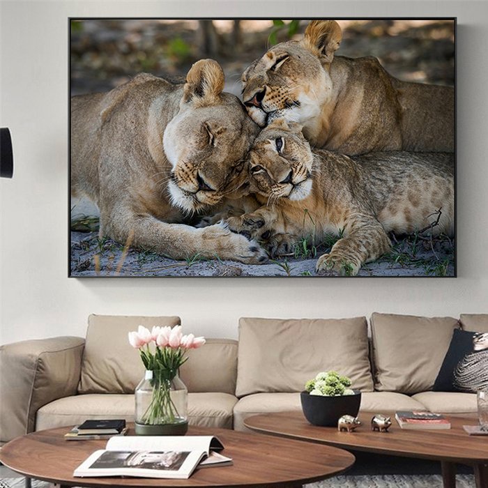 Quadro Família Leão 1 Filhote Amor - Tela Única