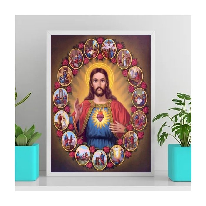 Quadro Fases Da Vida De Jesus Cristo 24x18cm:Madeira branca