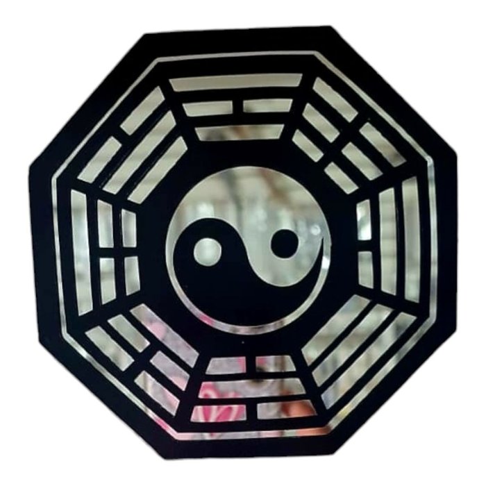 Quadro Feng Shui Baguá Espelhado Talismãs Ying Yang Preto