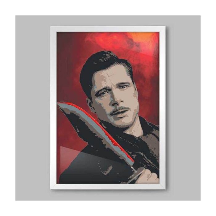 Quadro Filme Bastardos Inglórios Brad Pitt - 60x40cm - Moldura Padrão Branco