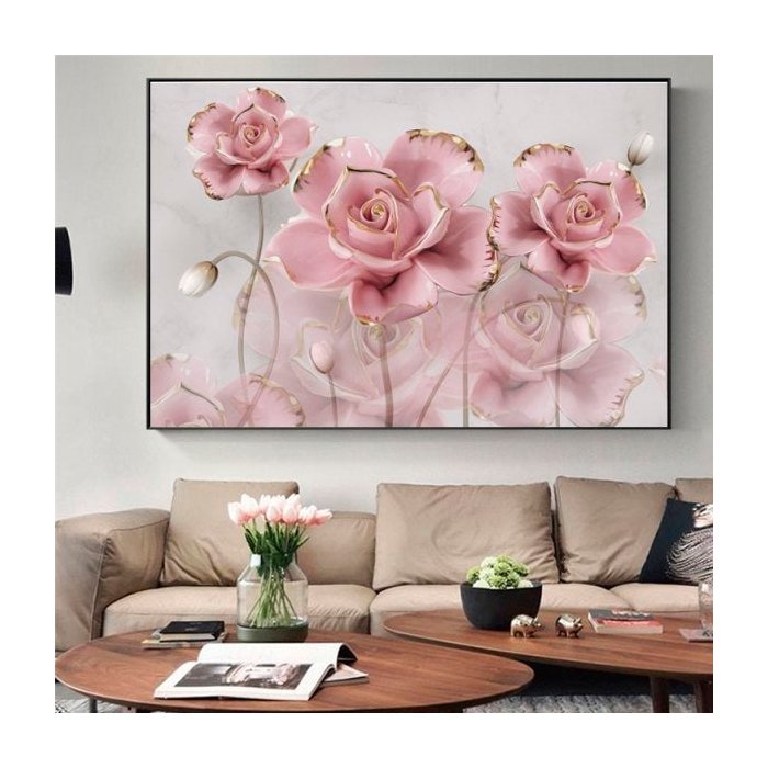 Quadro Flor Delicada Rosa Gold - Tela Única - 150 x 100 cm - Chassi