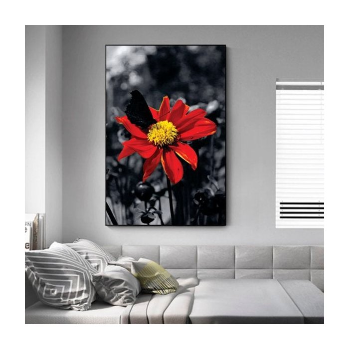 Quadro Flor Vermelha Vertical - Tela Única - 150 x 100 cm - Branca