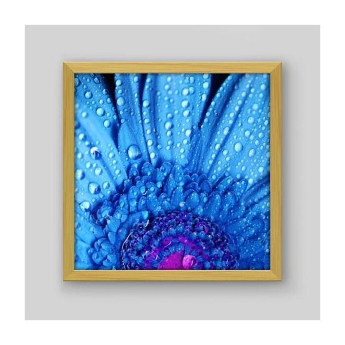 Quadro Floral Gerbera Azul - 40x40cm - Moldura Caixa Madeira