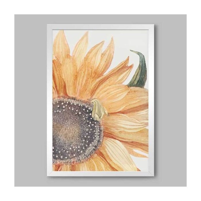 Quadro Floral Girassol Aquarela - 20x30cm - Moldura Padrão Branco