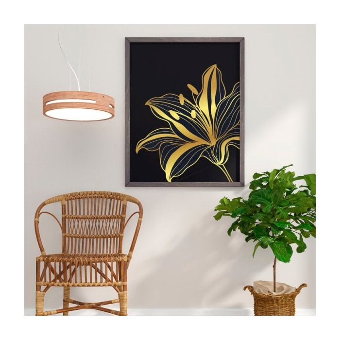 Quadro Flores Preta e Dourada Traço Fino 1 - Tela Única - 180 x 105 cm - Branca