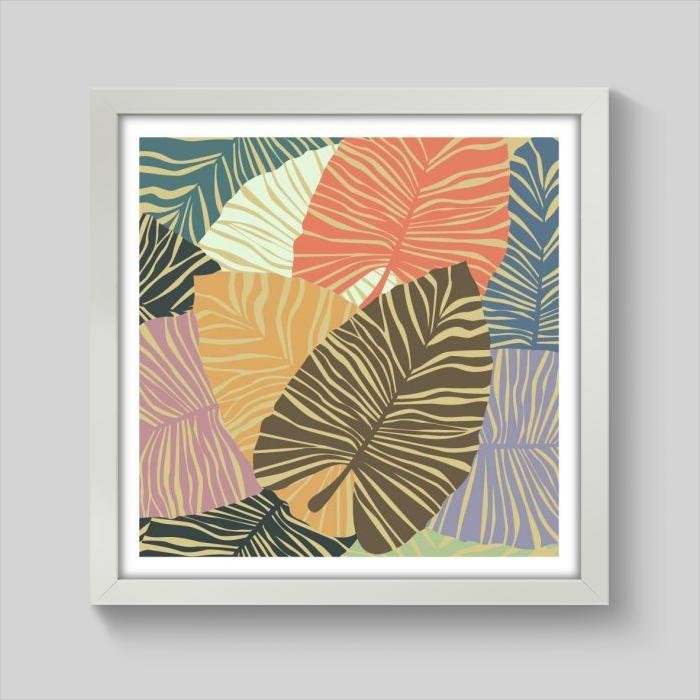 Quadro Folhas Coloridas 95 Arts Memphis 30x30cm Moldura Padrão Madeira
