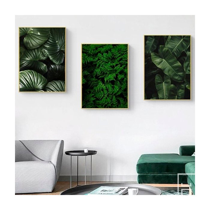 Quadro Folhas Natureza 2 - Kit 3 telas - 60 x 40 cm - Branca