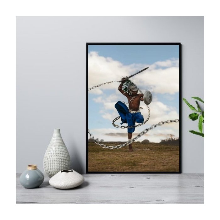 Quadro Fotografia Ogum Menino 45x34cm - com Vidro:madeira Branca