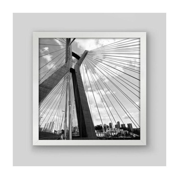 Quadro Fotografia Ponte Estaiada São Paulo - 30x30cm - Moldura Padrão Branco