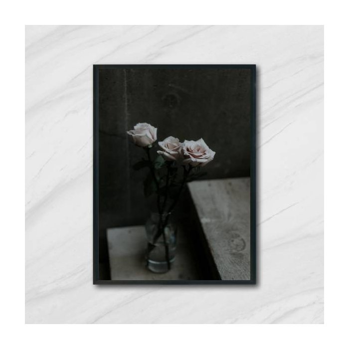 Quadro Fotografia Vaso com Rosas 33x24cm - com vidro:Madeira preta Madeira preta