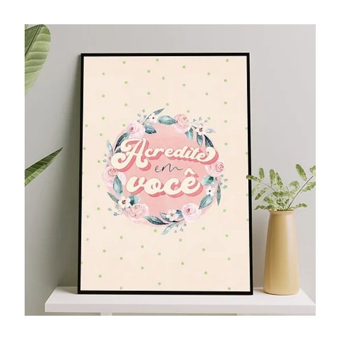 Quadro Frase Acredite Em Você 33x24cm:Madeira preta
