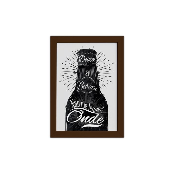 Quadro Frase Boteco Garrafa Moldura Marrom 33x43cm Preto